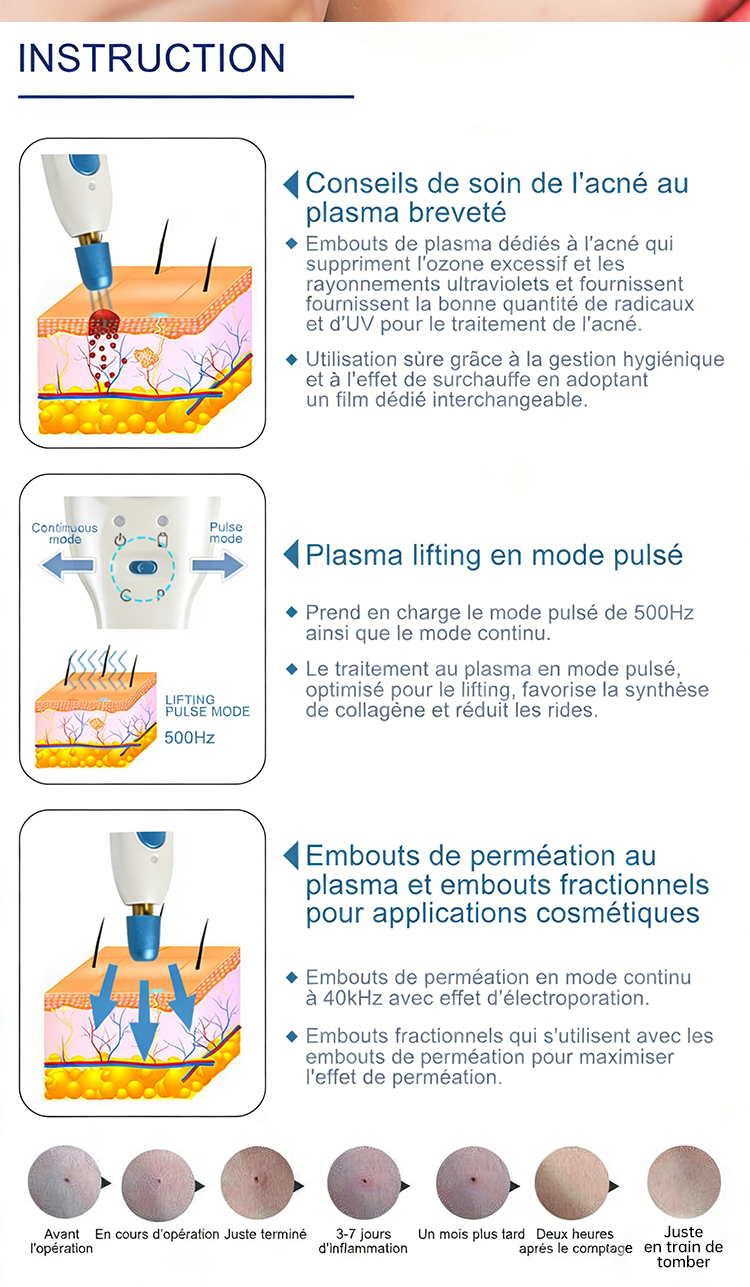 - * 【Puissance plasma brevetée, conception hygiénique】Notre technologie plasma exclusive fournit une énergie précise à chaque impulsion, tandis que les membranes jetables à usage unique garantissent une hygiène totale et une tranquillité d'esprit - aucune contamination croisée, aucun compromis.