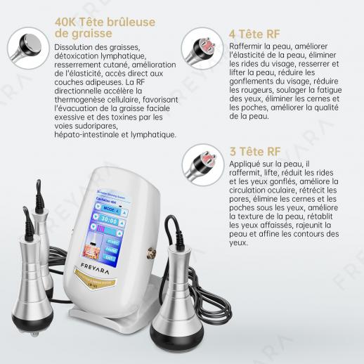 40K 3in1 RF Machine de Cavitation, Appareil Amincissant Sculptant Corps, Appareil à Cavitation avec 3 Têtes de Massage pour Graisse du Ventre, Taille, Bras, Jambe, Fesses