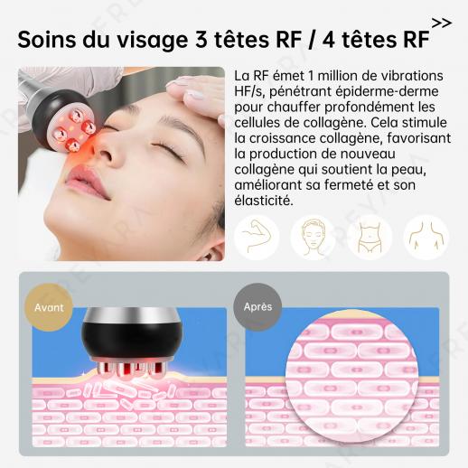 - * 【3 en 1】Equipé de 3 têtes de massage différentes, un ensemble complet de programmes pour tous les types de peau et toutes les parties du corps pour répondre aux besoins de soins du corps, de resserrement de la peau, de réduction de la graisse, de stimulation du métabolisme, etc.