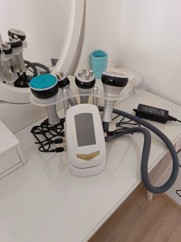 Appareil ultrason vacuum radio fréquence de très bonne qualité et de puissance pour effectuer divers soins corps pour éliminer cellulite et amas graisseux, éliminer relâchement cutané et améliorer peau visage. Avec un programme liant un peu d’activités une alimentation équilibré et deux à trois séances 1/2h par semaine vous verrez votre cellulite disparaître