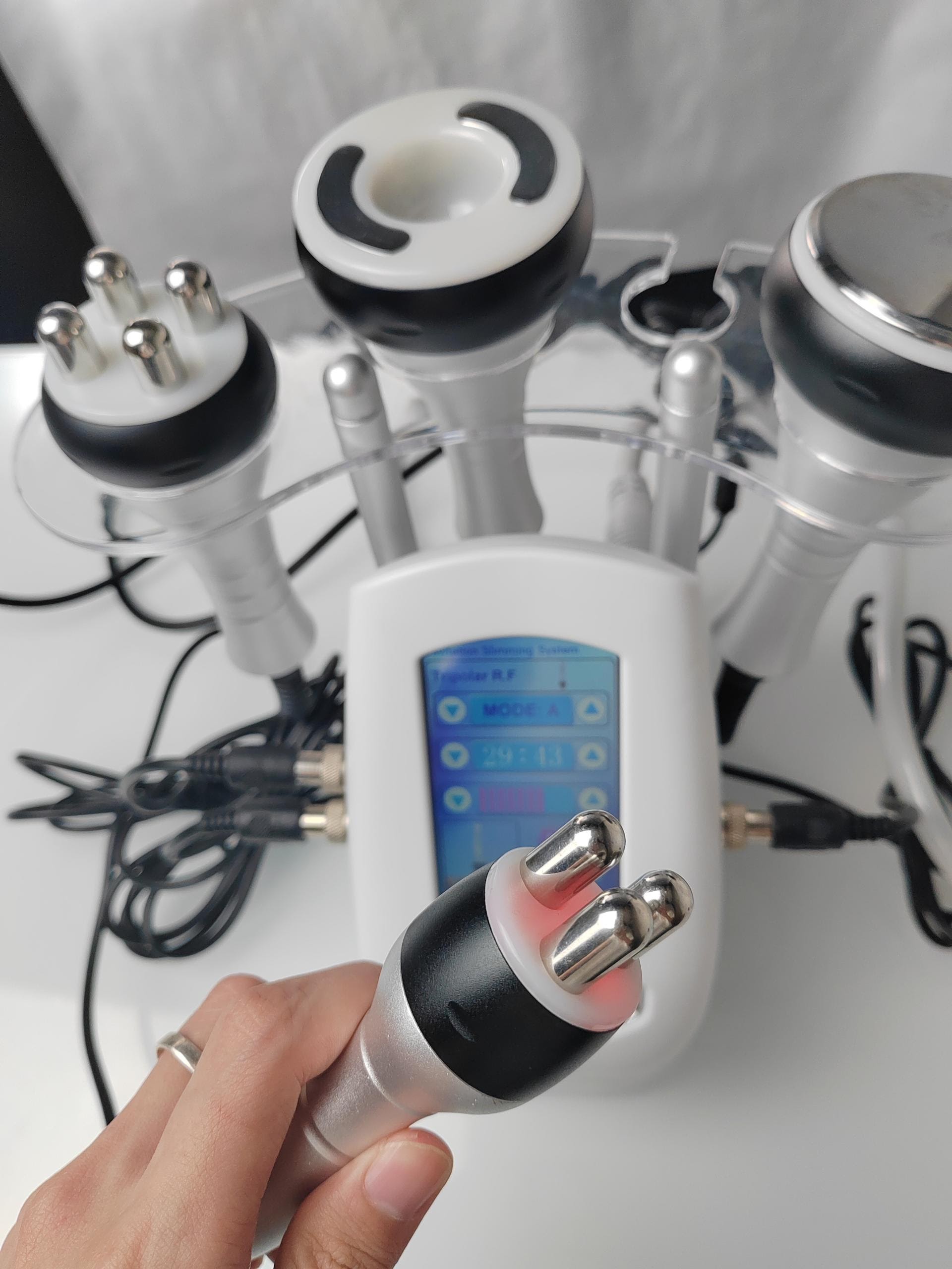 J'utilise cet appareil 4in1 40K Radio Frequency Cavitation Ultrasonic Body Sculpting Machine depuis deux semaines maintenant et je l'ai utilisé environ 5 fois sur mon visage, mes cuisses et mon ventre. Je ne peux pas dire que j'ai perdu du poids, mais ma peau semble plus ferme et mon teint moins terne depuis que je l'utilise.