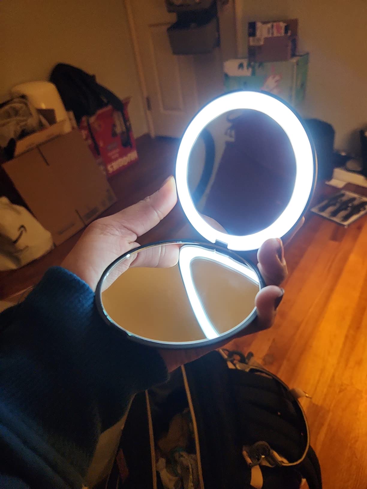 J'adore ces miroirs. Bien qu'ils soient un peu chers, ils constituent un merveilleux petit cadeau pour vos amis. Tout le monde est excité. Ne pas avoir à se soucier des piles est un vrai plus !! J'ai acheté beaucoup de miroirs roses et noirs et j'en achèterai probablement quelques autres pour en avoir sous la main pour mes copines. Vous allez les adorer !!!