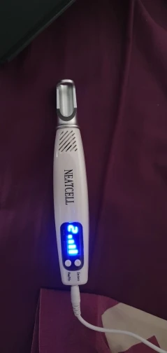 J'utilise ce stylo laser depuis trois semaines, principalement pour atténuer la pigmentation de mes joues. Les résultats sont probants : ma peau est plus lisse, plus lumineuse et mon teint plus uniforme. J'apprécie sa légèreté et le fait de pouvoir l'utiliser lors de ma routine de soins du soir.