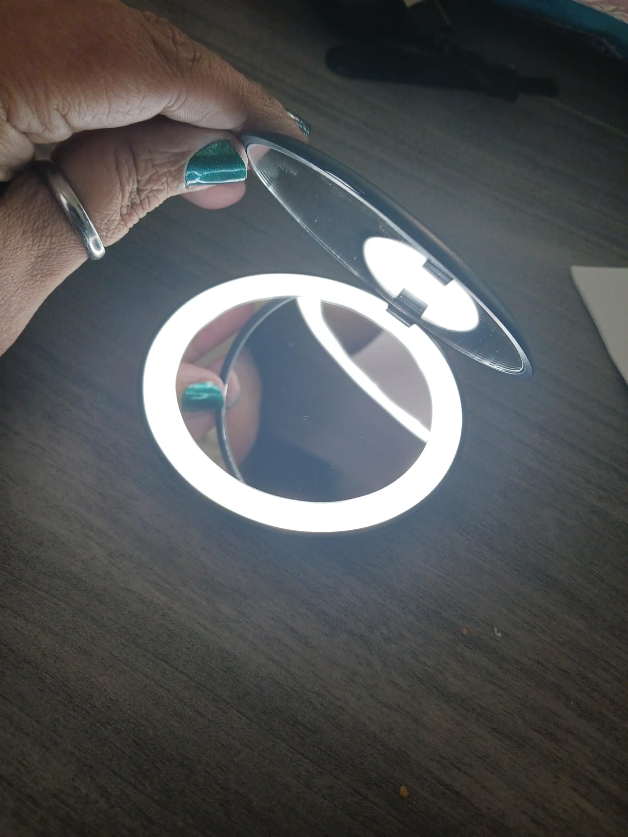 Miroir de très bonne qualité avec lumière LED très lumineuse. La taille est parfaite pour mon sac à main. Le seul problème est que le grossissement 10x est un peu trop fort, mais dans l'ensemble j'en suis très satisfait.