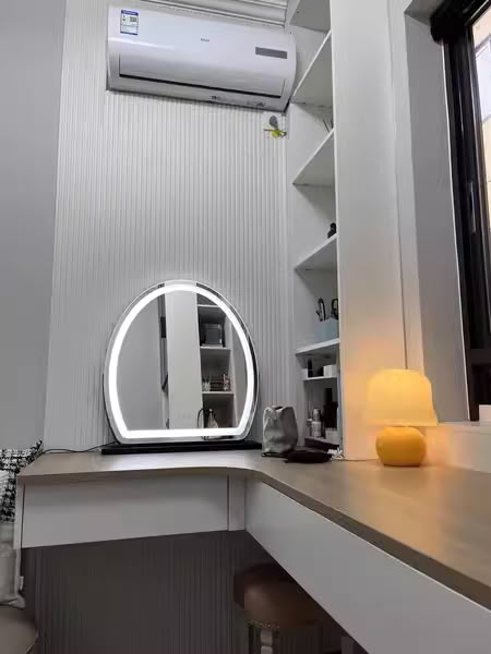 C'est beau et la taille parfaite pour ma coiffeuse habituelle. Il pivote pour que je puisse m'asseoir confortablement et me maquiller. L'éclairage est sympa, pas super lumineux, mais OK.