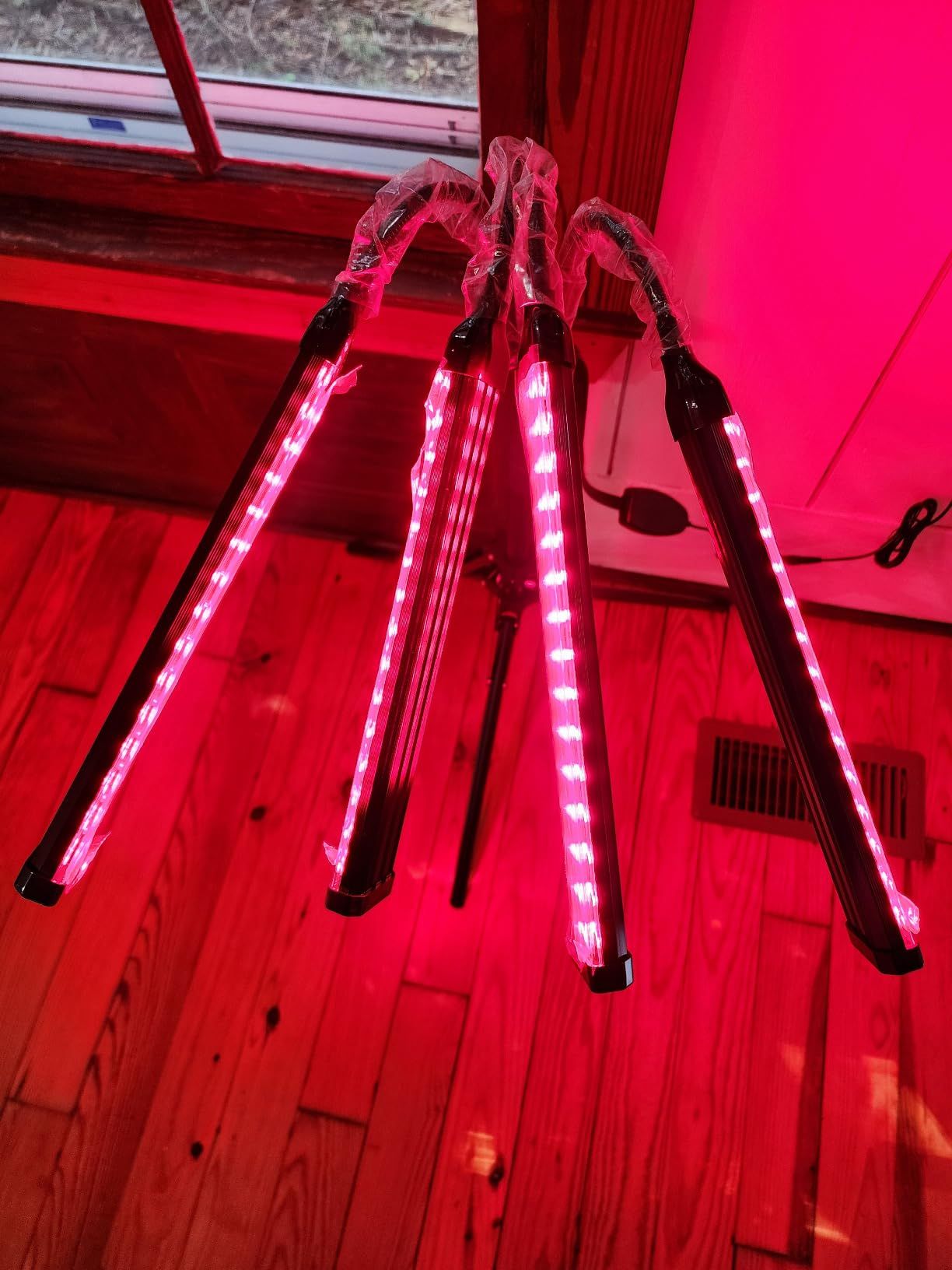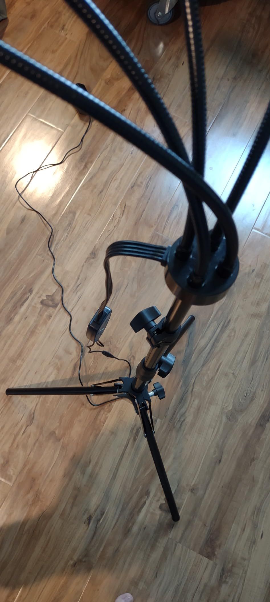 Le support lui-même est d'une simplicité impressionnante : je n'ai même pas eu besoin de consulter les instructions pour l'installer et le faire fonctionner rapidement. J'apprécie également la flexibilité des quatre sources lumineuses différentes, faciles à déplacer. C'est presque comme une pluie de lumière rouge, vraiment génial.