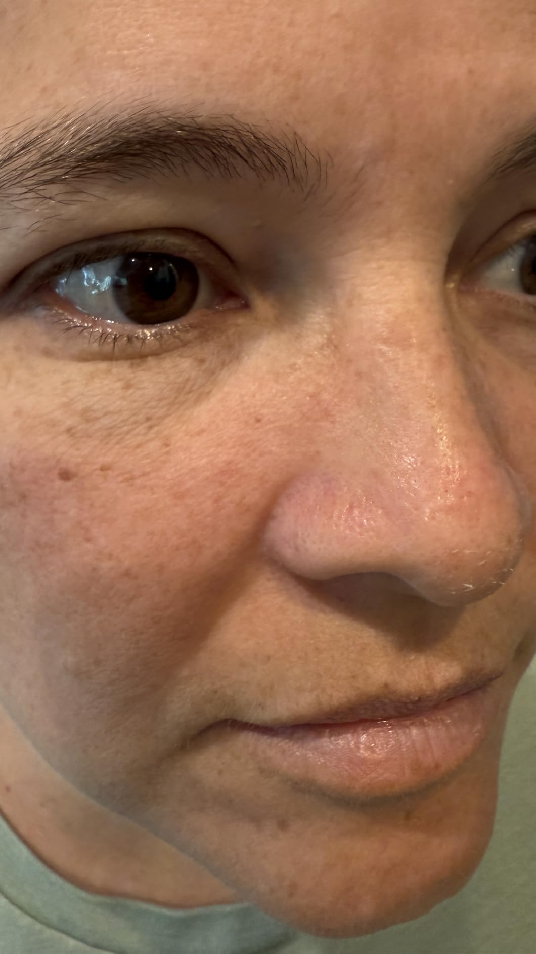 Je l'utilise depuis deux semaines (un jour sur deux, comme indiqué), et je ne suis pas sûre de voir une différence. C'est difficile à dire. Mon mari et ma mère disent qu'ils voient une différence sur les ridules de mon visage. La photo 4 est l'avant et la photo 5 l'après ; je vous laisse donc juger s'il y a une différence. Quoi qu'il en soit, j'apprécie vraiment ce masque. Il me procure 10 minutes de calme et de détente. Une fois appliqué, j'ai vraiment l'impression que quelque chose se passe sur ma peau sous la lumière. J'ai l'impression qu'elle est légèrement stimulée et qu'elle bouge légèrement. Je donne donc quatre étoiles à ce produit, car c'est comme une activité bien-être que je pratique pour moi-même et que j'apprécie. Quant à son efficacité, l'avenir nous le dira.