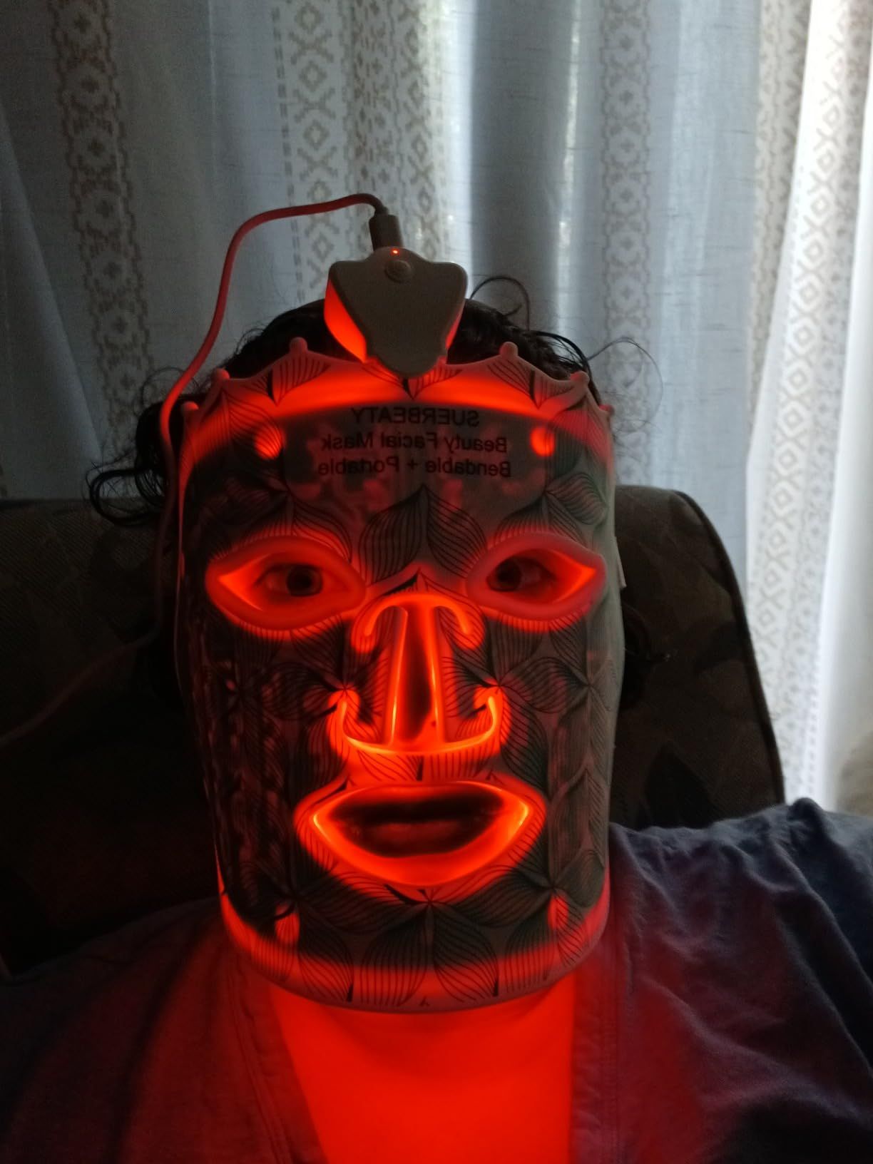 Mon objectif est d’utiliser la luminothérapie pour éliminer le besoin d’appliquer de la crème et de rincer. Les crèmes sont chères et prennent beaucoup de temps. Lorsque j’ai fait des recherches sur la luminothérapie, j’ai réalisé que je ne pouvais utiliser que la lumière rouge. Comme j'ai des taches pigmentaires foncées sur certaines parties de mon visage, je dois faire attention et ne pas en faire trop. C'est pour cette raison que j'utilise la thérapie seulement environ trois fois par semaine et pendant 10 minutes maximum. Après un mois, je ne vois pas encore de différence, mais certainement pas de détérioration. Je vais donc augmenter progressivement la fréquence d'utilisation.