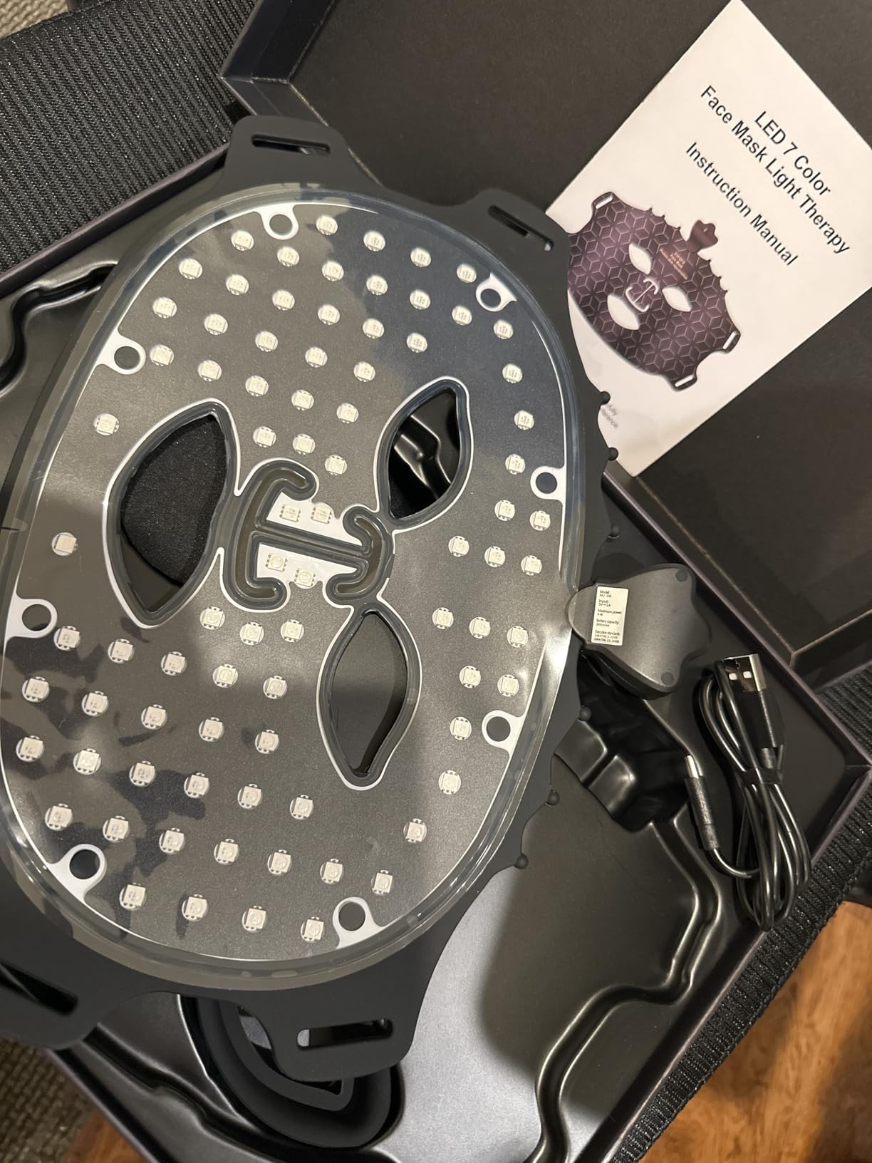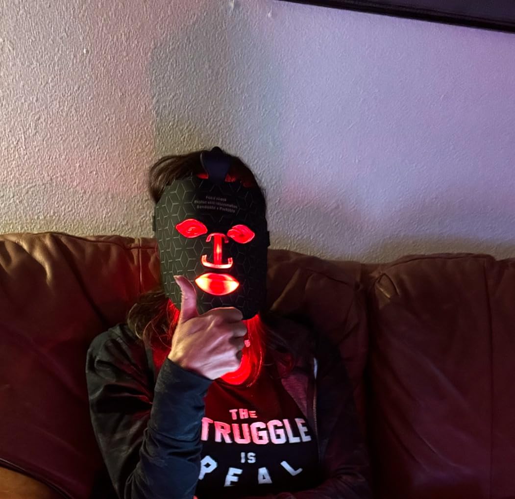 J'aime beaucoup ce masque à 7 couleurs pour plusieurs raisons. Tout d'abord, je peux le porter tout en lisant ou en faisant d'autres activités qui nécessitent une bonne vue ! La mousse noire autour des yeux (à installer soi-même) bloque complètement la lumière. Il faut également installer les sangles, ce qui est très simple. Les sept lumières répondent à différents besoins (voir ma photo des lumières et de leurs longueurs d'onde). La lumière rouge est à 630 nm, ce qui n'était pas indiqué sur la page du produit. La lumière bleue est à 470 nm et la lumière verte à 520 nm. Le masque est confortable, facile à recharger et s'éteint automatiquement après 10 minutes. Enfin, un dernier avantage : il est sans fil, ce qui permet de se déplacer librement. Je recommande ce masque pour sa facilité d'utilisation !