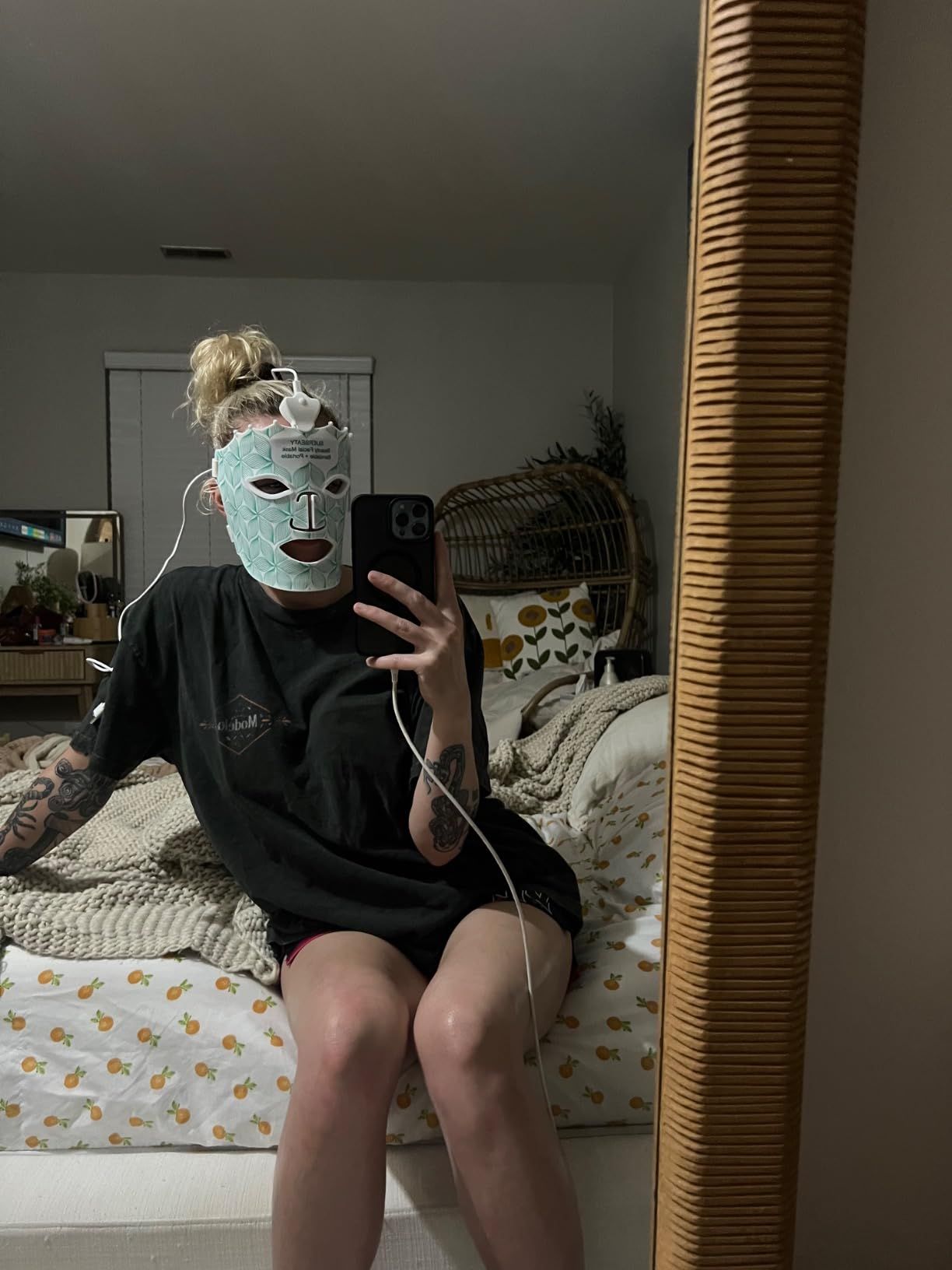 Il se charge rapidement et est ensuite sans fil, vous pouvez donc porter le masque sans aucun problème. Les œilletons ne bloquent pas complètement la lumière et les instructions recommandent de fermer les yeux pendant l'utilisation. J'ai une peau à tendance acnéique et j'ai la trentaine. J'effectue donc un cycle avec la lumière bleue et un autre avec la lumière rouge. Mon acné s'est déjà améliorée même si je n'utilise le masque que depuis une semaine. J’apprécie aussi les 20 minutes de « temps pour moi » pendant lesquelles je « dois fermer les yeux ».